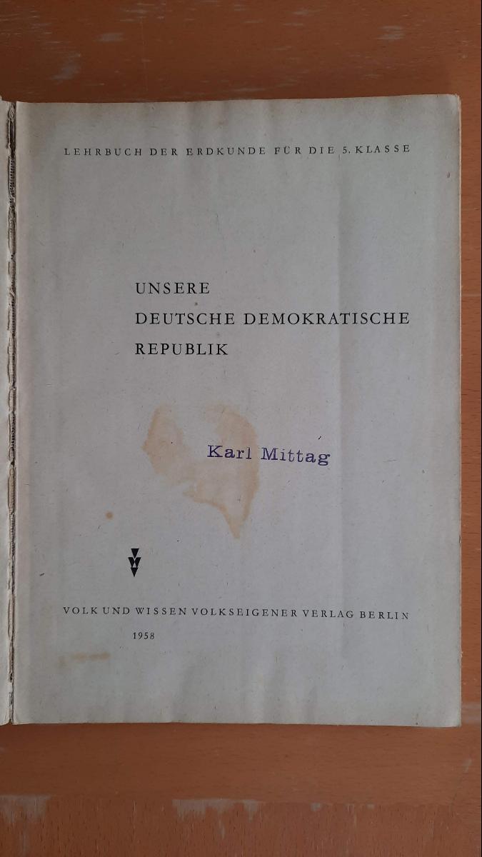 UNSERE DEUTSCHE DEMOKRATISCHE REPUBLIK LEHRBUCH DER ERDKUNDE FÜR DIE 5. KLASSE DDR 1958