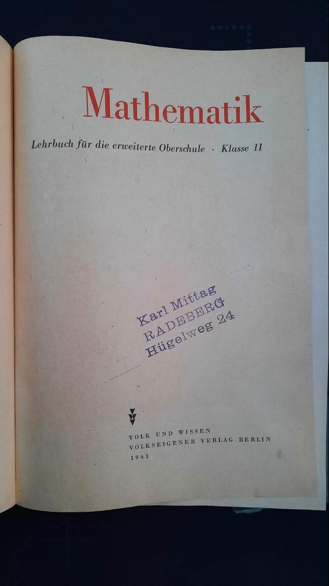 Mathematik Klasse 11 EOS Lehrbuch DDR 1963