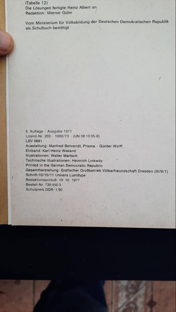 Bemerkung: Die Lösungen fertigte Heinz Albert an, Vom Ministerium für Volksbildung der Deutschen Demokratischen Republik als Schulbuch bestätigt
