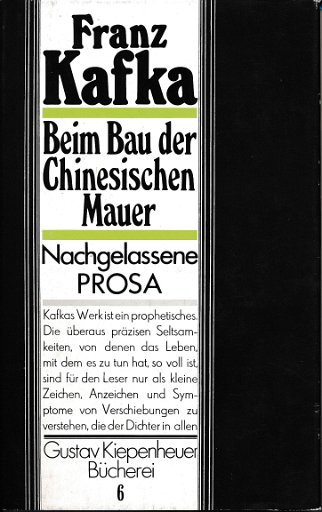 6. Auflage, DDR-Buch, Prosa und Betrachtungen aus dem Nachlass – nur Abnutzung am Papierschutzumschlag – Schutzumschlag am Rand leicht berieben