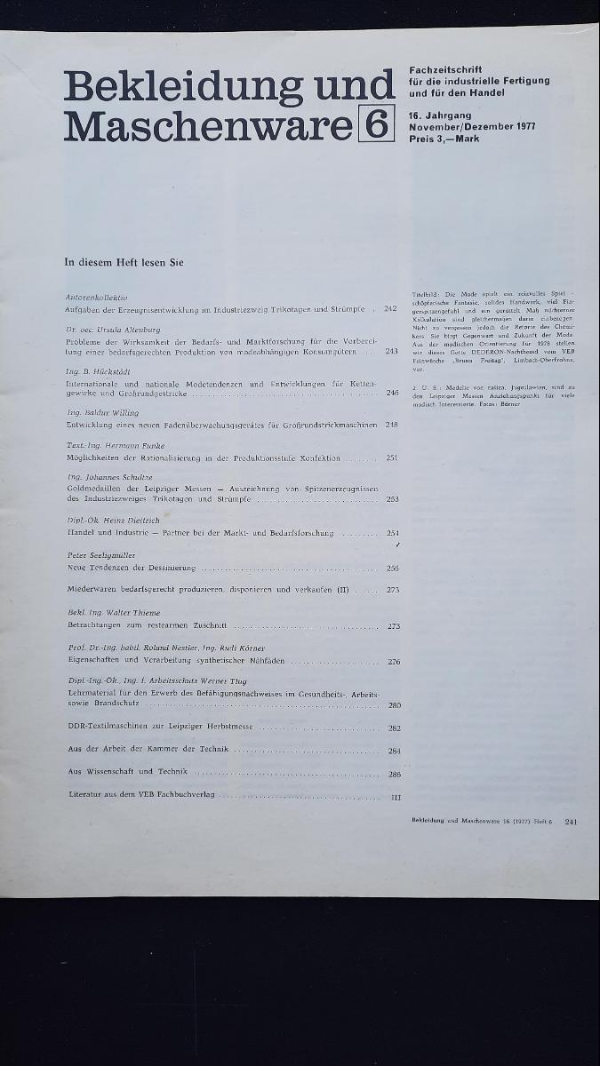 Bekleidung und Maschenware November / Dezember 1977