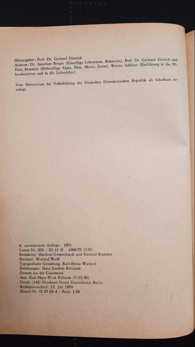 Besonderheiten: Vom Ministerium für Volksbildung der Deutschen Demokratischen Republik als Schulbuch bestätigt. ES 11 H 1000/70 (UN) Einband: Wieland/Wolff Typografische Gestaltung: Karl-Heinz Wieland Satz: Karl-Marx-Werk Pößneck (V/15/30)