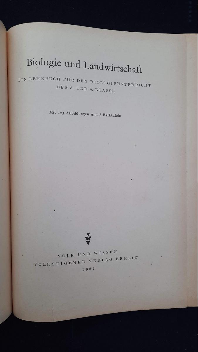 Bemerkung: Bestätigt vom Ministerium für Volksbildung der Deutschen Demokratischen Republik als Lehrbuch für die allgemeinbildende polytechnische Oberschule. Mit 123 Abbildungen und 8 Farbtafeln. Die Autoren verfassten spezifische Teile: Dr. Gerhard Lerch (Die Pflanze), Heinz Falkenberg (Der Wald), Jochen Krüger (Biologie und Landwirtschaft). Einbandgestaltung: Günther Klaus. Ausstattung: Atelier Volk und Wissen, Berlin.