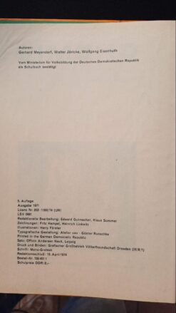 Bemerkung: Vom Ministerium für Volksbildung der Deutschen Demokratischen Republik als Schulbuch bestätigt. Zeichnungen: Fritz Hampel, Heinrich Linkwitz. Typografische Gestaltung: Atelier vwv Günter Runschke. Satz: Offizin Andersen Nexö, Leipzig.