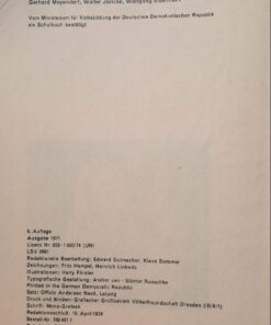 Bemerkung: Vom Ministerium für Volksbildung der Deutschen Demokratischen Republik als Schulbuch bestätigt. Zeichnungen: Fritz Hampel, Heinrich Linkwitz. Typografische Gestaltung: Atelier vwv Günter Runschke. Satz: Offizin Andersen Nexö, Leipzig.
