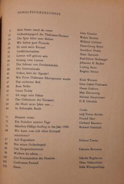 „Der Sputnik ist unser Zeichen. Almanach für Thälmann-Pioniere“ ist ein vielseitiges DDR-Kinderbuch, das spannende Erzählungen, Gedichte, Rätsel und Sachtexte miteinander verbindet und auf die junge Zielgruppe der Thälmann-Pioniere zugeschnitten ist[1][2]. Es vermittelt anhand von Themen wie Freundschaft, Forschergeist, Geschichte und Solidarität nicht nur Wissen, sondern auch sozialistische Werte, die den Geist des Fortschritts und Zusammenhalts betonen. Mit Beiträgen namhafter Autoren, zahlreichen Illustrationen und Fotos regt der Almanach zum Lernen, Forschen und gemeinsamen Erleben an. Auch praktische Tipps, Abenteuergeschichten sowie kreative Spiele fördern die Fantasie und Neugier der Kinder. Das Buch ist damit ein Spiegel der Kindheit in der DDR und lädt zum Entdecken und Mitmachen ein[1][2].