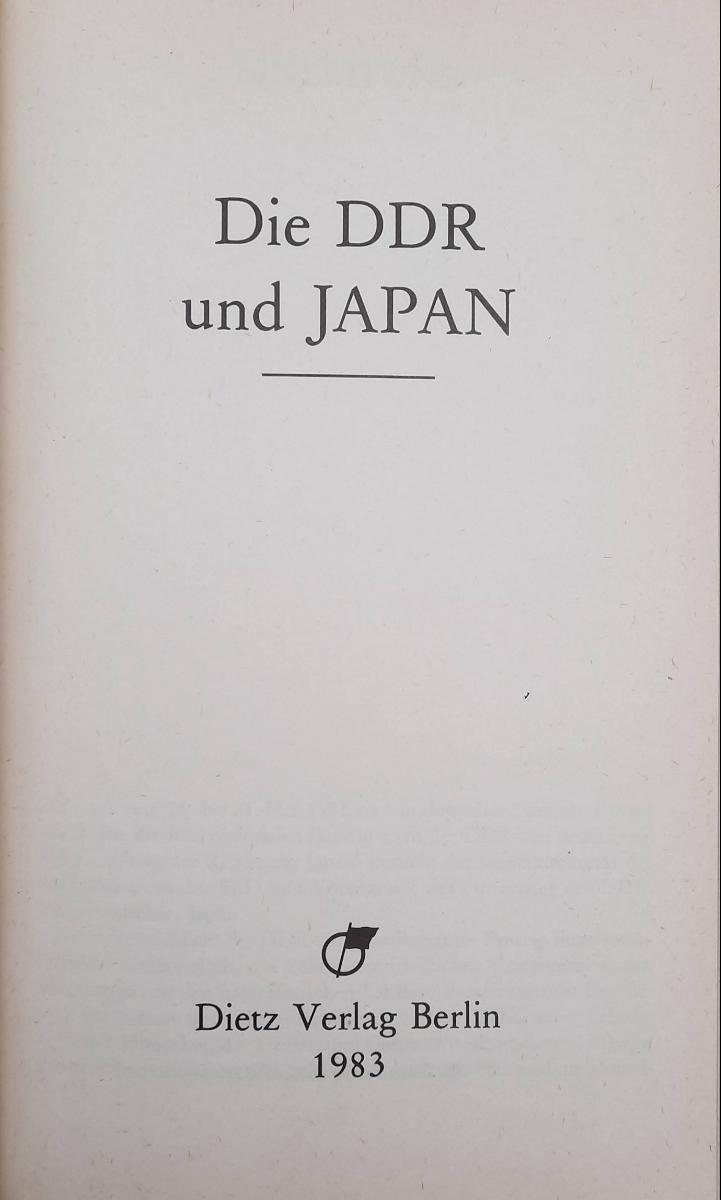 – **Inhalt**: Historische, politische und wirtschaftliche Beziehungen zwischen der DDR und Japan