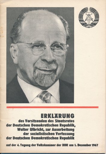 Erklärung des Vorsitzenden des Staatsrates der DDR, Walter Ulbricht, zur Ausarbeitung der sozialistischen Verfassung der DDR