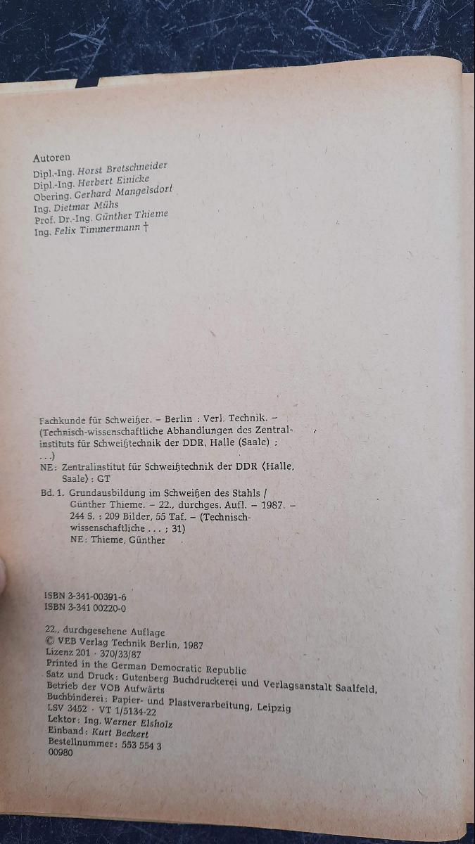 Fachkunde für Schweißer Band 1 Grundausbildung 1987