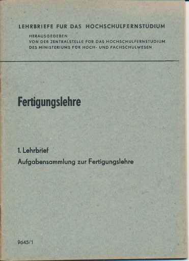 Aufgabensammlung zur Fertigungslehre, Lehrbriefe für das Hochschulfernstudium – geringe Gebrauchs- und Altersspuren – Kante an der Heftung leicht berieben