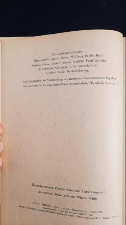 Besonderheiten: Vom Ministerium für Volksbildung der Deutschen Demokratischen Republik als Lehrbuch für die allgemeinbildende polytechnische Oberschule bestätigt, Ausstattung: Atelier Volk und Wissen, Berlin