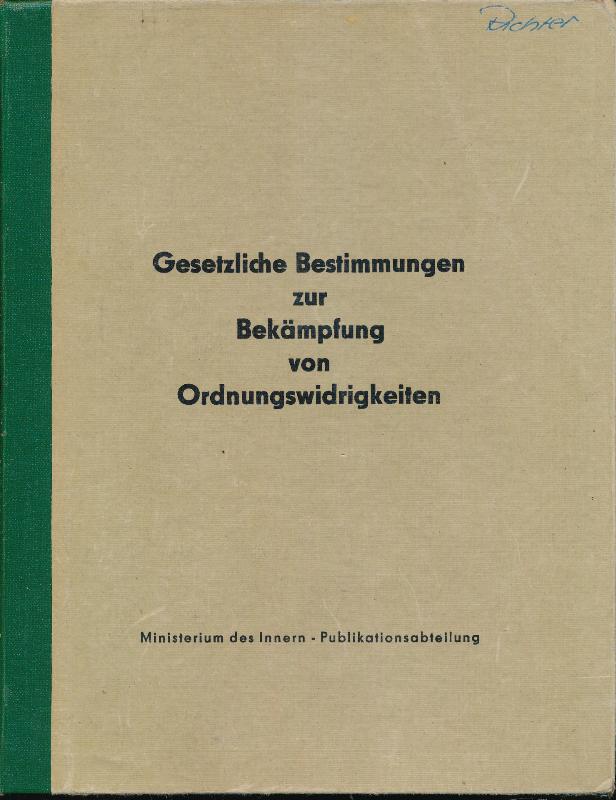 Gesetzliche Bestimmungen zur Bekämpfung von Ordnungswidrigkeiten Volkspolizei
