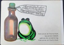 Ein weiteres zentrales Motiv ist der kranke Frosch, der – ungewöhnlicherweise – auf der Ofenbank liegt und quakt. Die Szene wird mit kindlicher Empathie und Poesie erzählt: „Denkt euch nur, der Frosch ist krank, liegt auf unsrer Ofenbank, quakt nun schon, wer weiß wie lang. Denkt euch nur, der Frosch ist krank.“