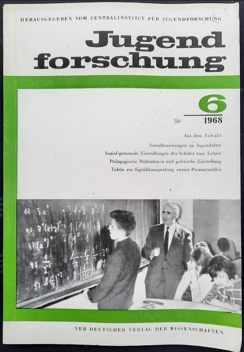 Das im Jahr 1968 vom Zentralinstitut für Jugendforschung Leipzig herausgegebene Buch **„Jugendforschung 6“** präsentiert fundierte wissenschaftliche Analysen zur Entwicklung, zu sozialen Beziehungen und zu politischen Einstellungen von Jugendlichen in der DDR. Im Mittelpunkt stehen Untersuchungen zum Sozialverhalten von Oberschülern im Alter von 14 bis 17 Jahren und deren Anpassung an die Normen der sozialistischen Gemeinschaft, wobei typische Merkmale wie Disziplin, Ehrlichkeit und Hilfsbereitschaft im Alltag beleuchtet werden. Neben theoretischen Beiträgen behandeln die Autoren auch die Wirkung pädagogischer Maßnahmen auf die politische Einstellung, den Einfluss der Lehrer-Schüler-Beziehung und die Rolle politischer Jugendorganisationen. Statistische Methoden zur Signifikanzprüfung sowie innovative Verfahren zur Erfassung sozialer Einstellungen ergänzen die empirische Ausrichtung des Sammelbandes. Das Buch liefert damit einen vielschichtigen Einblick in die sozialwissenschaftliche Jugendforschung der DDR und dokumentiert, wie Erziehung, Politik und gesellschaftliche Werte im sozialistischen Kontext miteinander verwoben sind[2][3].