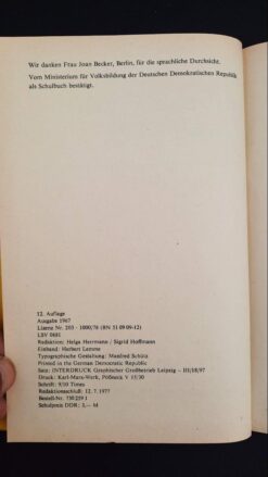 Bemerkung: Vom Ministerium für Volksbildung der Deutschen Demokratischen Republik als Schulbuch bestätigt. Wir danken Frau Joan Becker, Berlin, für die sprachliche Durchsicht.