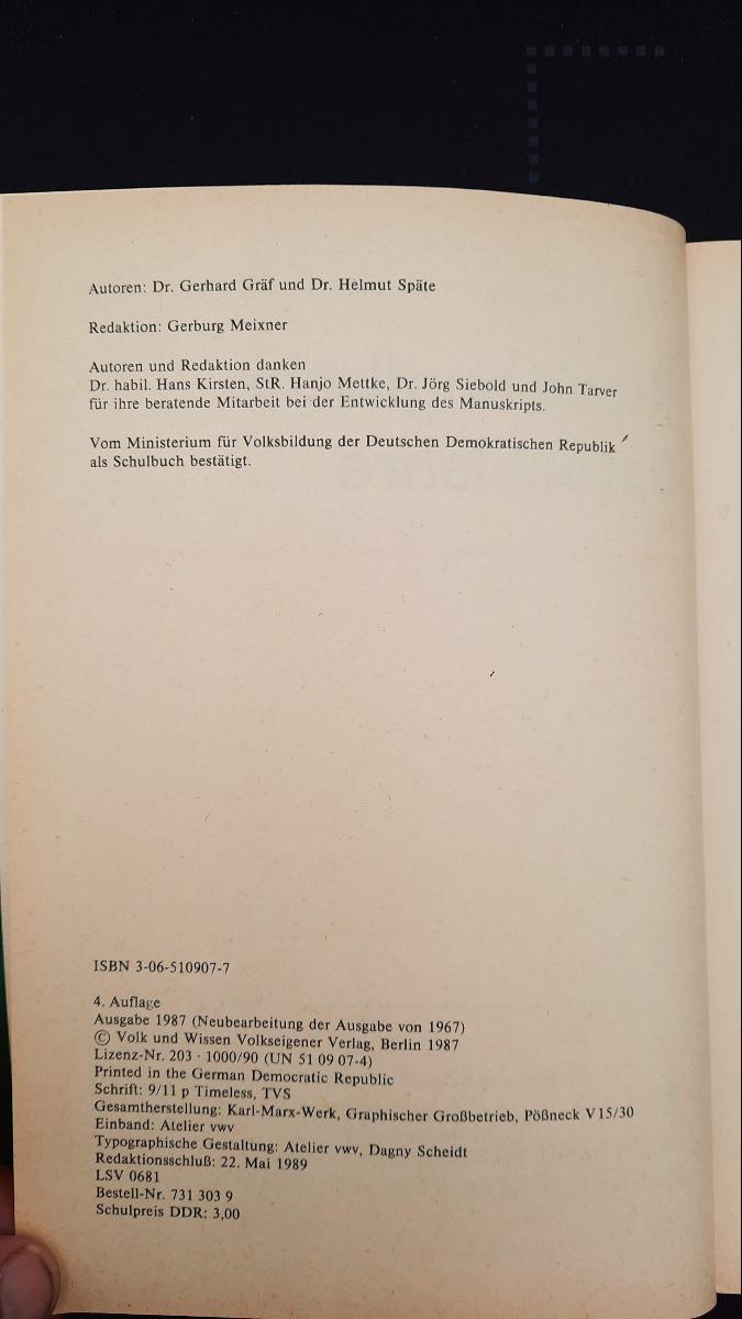Bemerkung: Vom Ministerium für Volksbildung der Deutschen Demokratischen Republik als Schulbuch bestätigt.