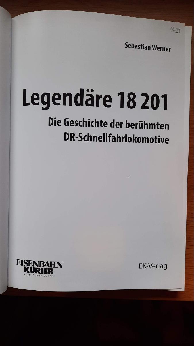 Legendäre 18 201 – Die Geschichte der berühmten DR-Schnellfahrlokomotive von Sebastian Werner, erschienen 2021 im EK-Verlag, bietet eine umfassende Monografie zur schnellsten Dampflokomotive der DDR (Loknummer 18 201). Das Buch behandelt die Entwicklung, die technische Umsetzung und den Betrieb dieser außergewöhnlichen Lokomotive, die einen bedeutenden Meilenstein der deutschen Eisenbahngeschichte darstellt und heute als Museumsfahrzeug eine Legende ist. Es umfasst 192 Seiten und enthält rund 330 Abbildungen im Hardcover-Großformat[1][5].