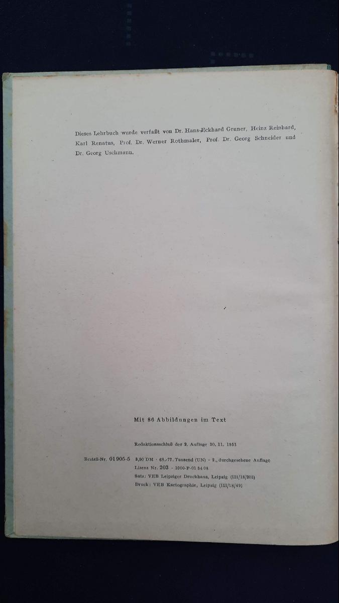 | Autor | Dr. Hans-Eckhard Gruner, Heinz Reinhard, Karl Renatus, Prof. Dr. Werner Rothmaler, Prof. Dr. Georg Schneider, Dr. Georg Uschmann |