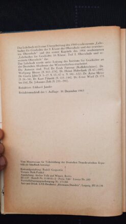 Lehrbuch für Geschichte 9. Klasse Oberschule und erweiterte Oberschule Lehrbuch DDR 1967