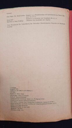 Das antiquarische Buch „Mathematik 9 Lehrbuch DDR 1976“ ist ein schulisches Standardwerk der ehemaligen DDR für die neunte Klassenstufe. Es prägt den Mathematikunterricht jener Zeit durch eine methodisch strukturierte, umfassende und praxisnahe Darstellung von Arithmetik, Algebra und Analysis. Die Erstausgabe erschien 1976 und diente als offizielles Lehrbuch für die Polytechnische Oberschule der DDR. Das Werk ist reich illustriert – mit farbigen Grafiken, Schwarzweißfotografien und anschaulichen Beispielen – und verfolgt einen starken Bezug zur naturwissenschaftlich-technischen Realität, wie sie im sozialistischen Bildungsideal gefordert war[1][3].