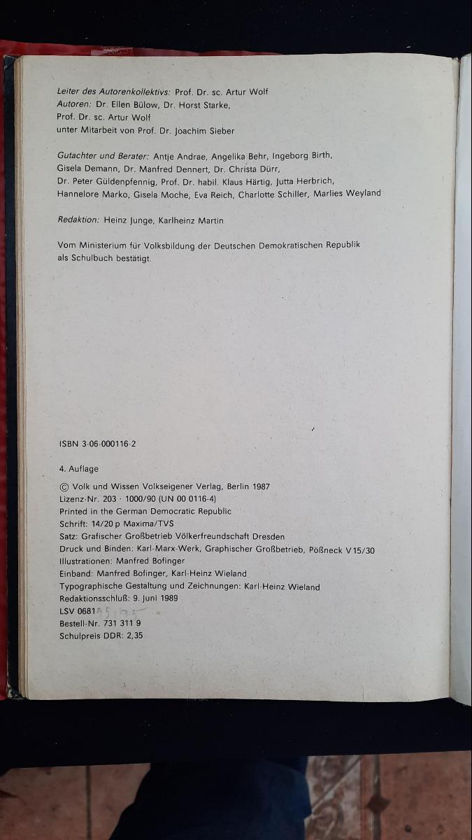 Bemerkung: Vom Ministerium für Volksbildung der Deutschen Demokratischen Republik als Schulbuch bestätigt. Printed in the German Democratic Republic.