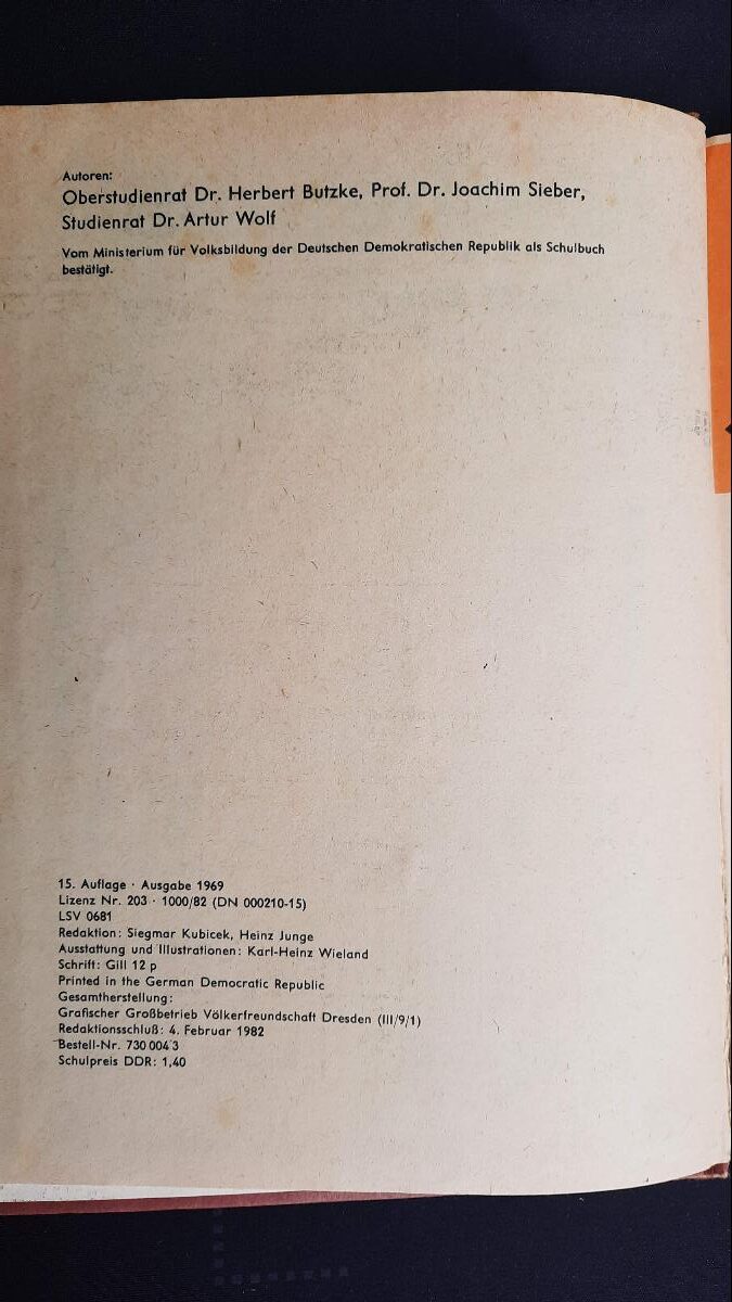 | Bemerkung | Vom Ministerium für Volksbildung der Deutschen Demokratischen Republik als Schulbuch bestätigt. |