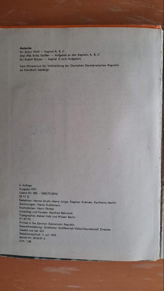 Bemerkung: Vom Ministerium für Volksbildung der Deutschen Demokratischen Republik als Schulbuch bestätigt., ES 11 G, P 1/27/73, Typographie: Atelier Volk und Wissen Berlin
