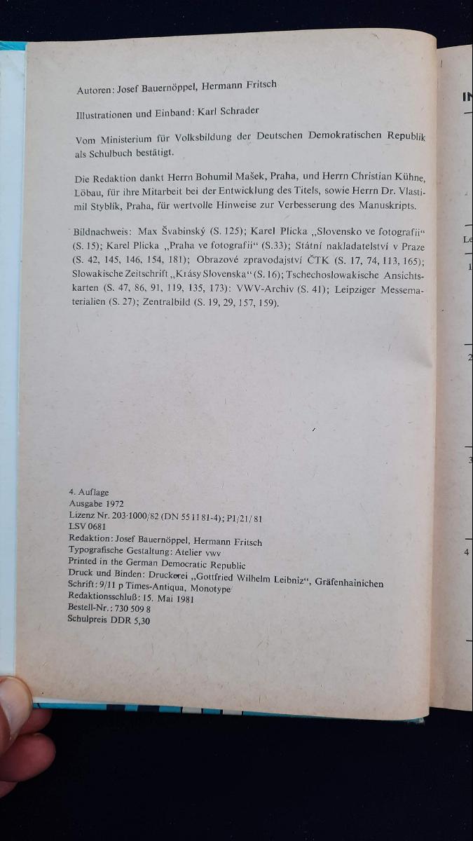 Bemerkung: Vom Ministerium für Volksbildung der Deutschen Demokratischen Republik als Schulbuch bestätigt. Typografische Gestaltung: Atelier vwv. Printed in the German Democratic Republic.