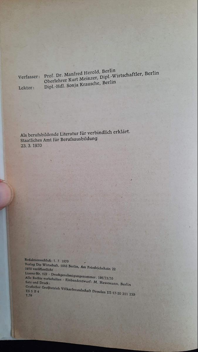 Ökonomik für die Berufsbildung Lehrbuch DDR 1970
