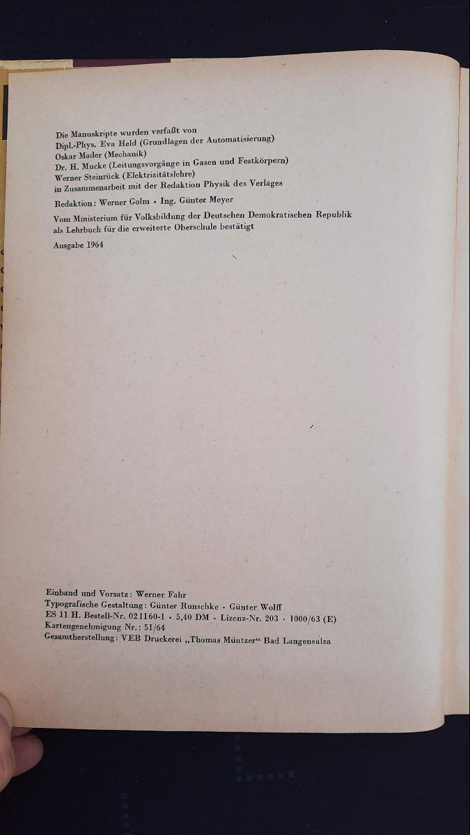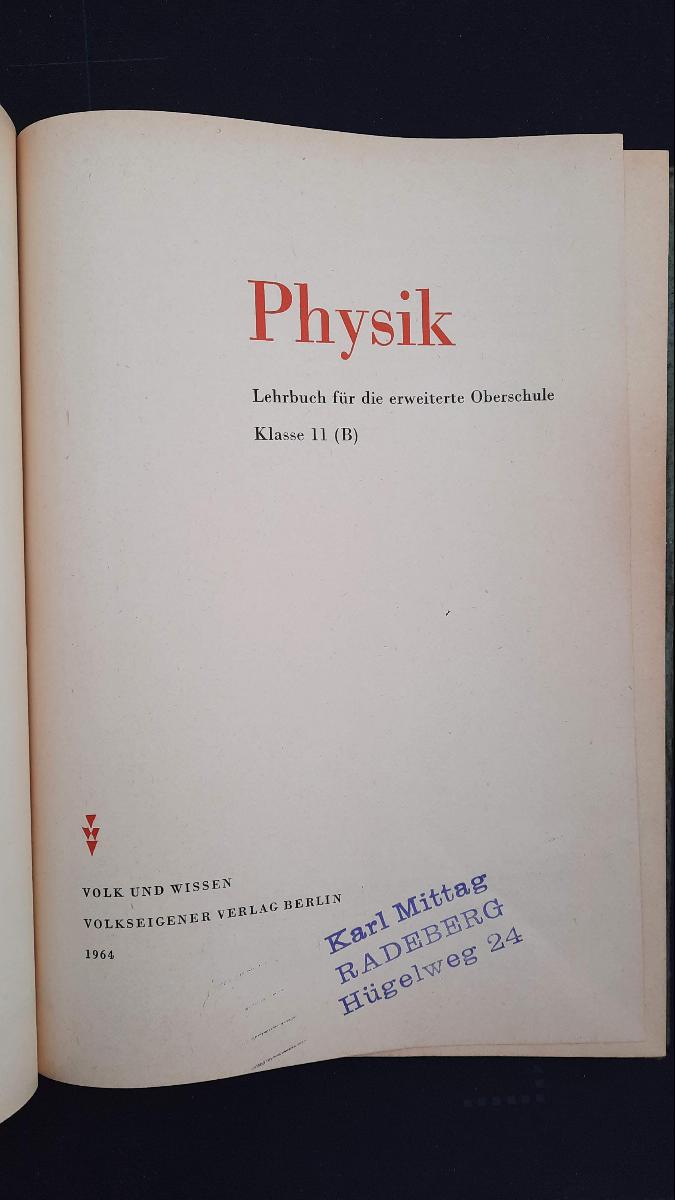 Physik Klasse 11 EOS Lehrbuch DDR 1964
