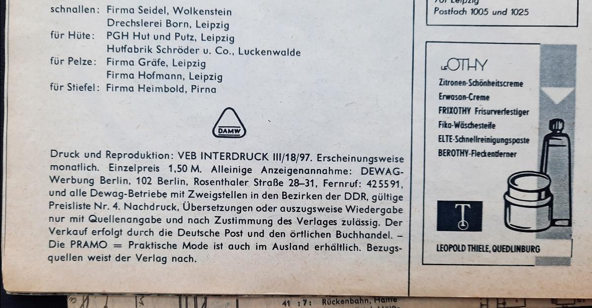 Pramo Heft 8 1968 Praktische Mode Zeitschrift DDR Schnittmuster