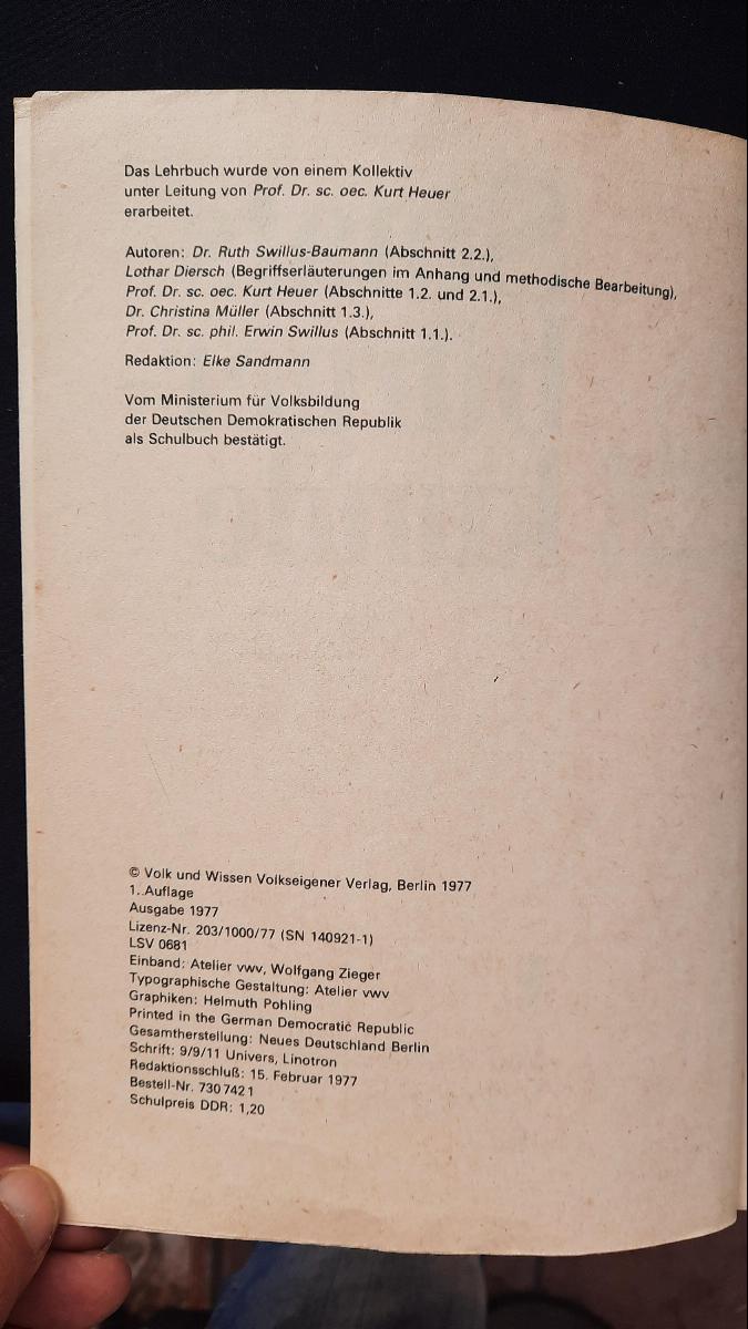 Besonderheiten: Das Lehrbuch wurde von einem Kollektiv unter Leitung von Prof. Dr. sc. oec. Kurt Heuer erarbeitet.