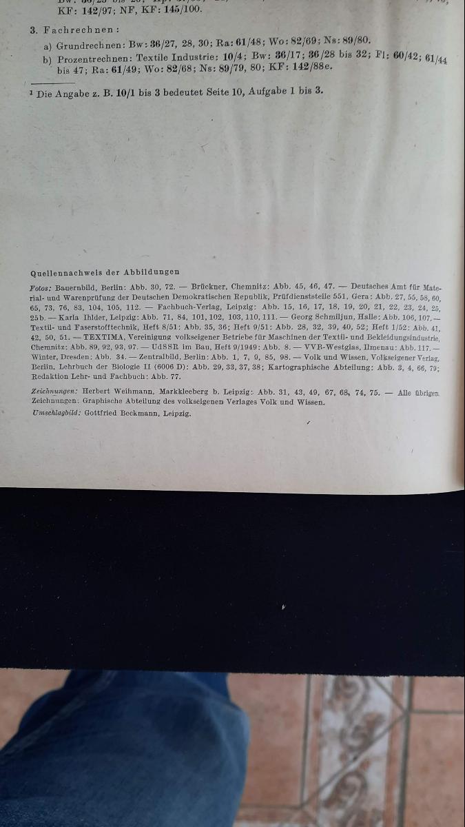 Besonderheiten: Interne Klassifikationscodes/Referenzen: BW: 30/25 15 20, KF: 142/97, NF, KF: 145/100. Fachrechen-Referenzen: 3. Fachrechnen: a) Grundrechnen: Bw: 36/27, 28, 30, Ra: 61/48, Wo: 82/69, Ns: 89/80. b) Prozentrechnen: Textile Industrie: 10/4, Bw: 36/17, 38/28 bis 32, F1: 60/42, 61/44 bis 47, Ra: 61/49, Wo: 82/68, Ns: 89/79, 80, KF: 142/88e. Die Angabe z. B. 10/1 bis 3 bedeutet Seite 10, Aufgabe 1 bis 3.