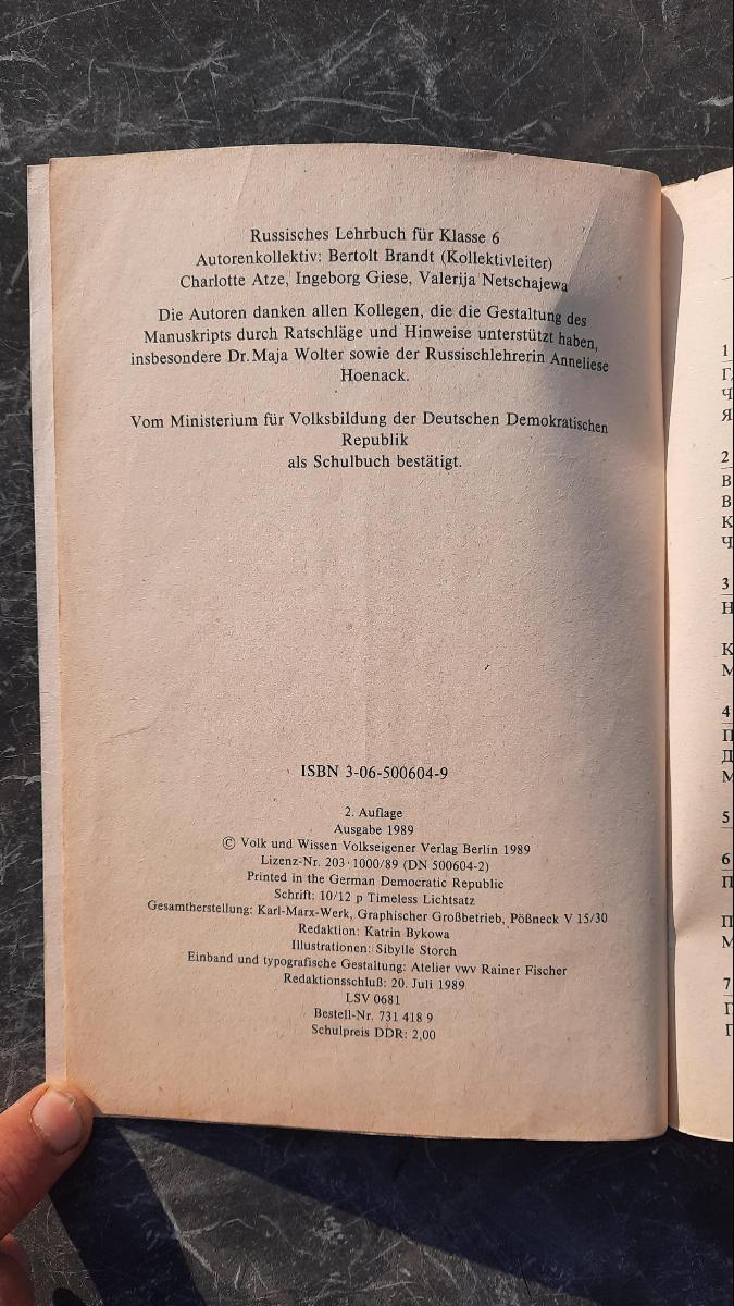 Besonderheiten: Vom Ministerium für Volksbildung der Deutschen Demokratischen Republik als Schulbuch bestätigt. Einband und typografische Gestaltung: Atelier vwv Rainer Fischer. Die Autoren danken allen Kollegen, die die Gestaltung des Manuskripts durch Ratschläge und Hinweise unterstützt haben, insbesondere Dr. Maja Wolter sowie der Russischlehrerin Anneliese Hoenack.