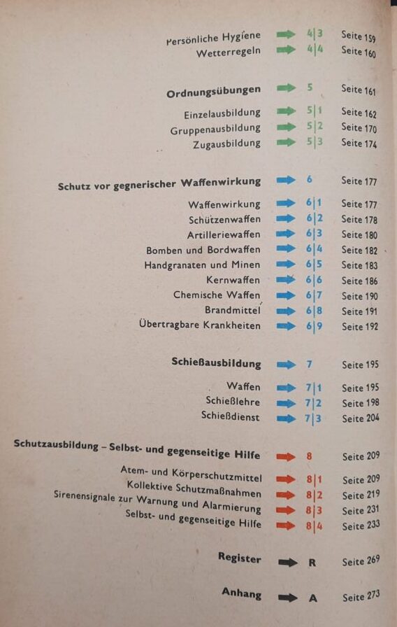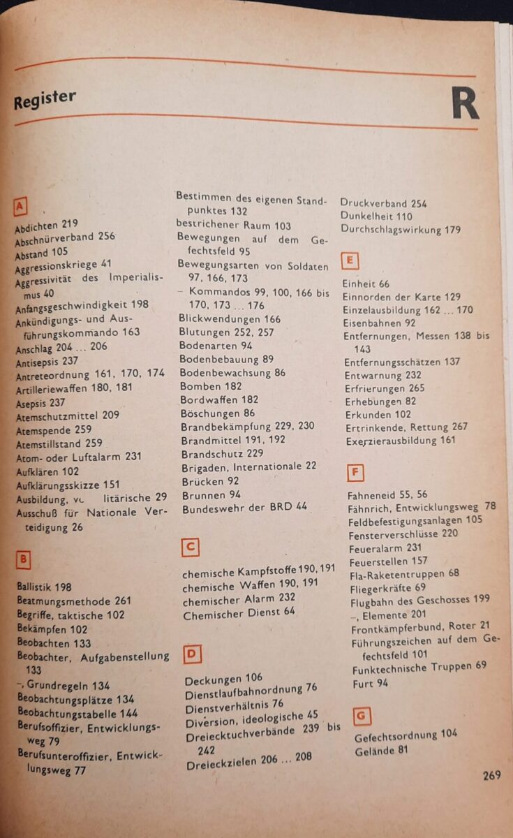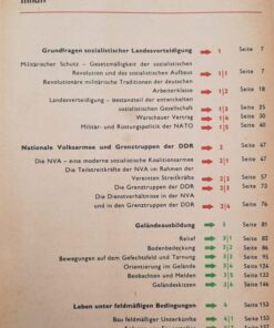 - Grundlagen der sozialistischen Landesverteidigung: Staats- und Militärpolitik, Rolle der Revolution, historische Traditionslinien der deutschen Arbeiterklasse, Warschauer Vertrag und Militär- und Rüstungspolitik der NATO.